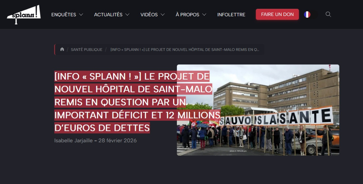 Une interview d'Isabelle Jarjaille, journaliste pour Splann!, média d'investigation breton, venant présenter son enquête "Hôpital public : une destruction programmée, un marché pour le privé